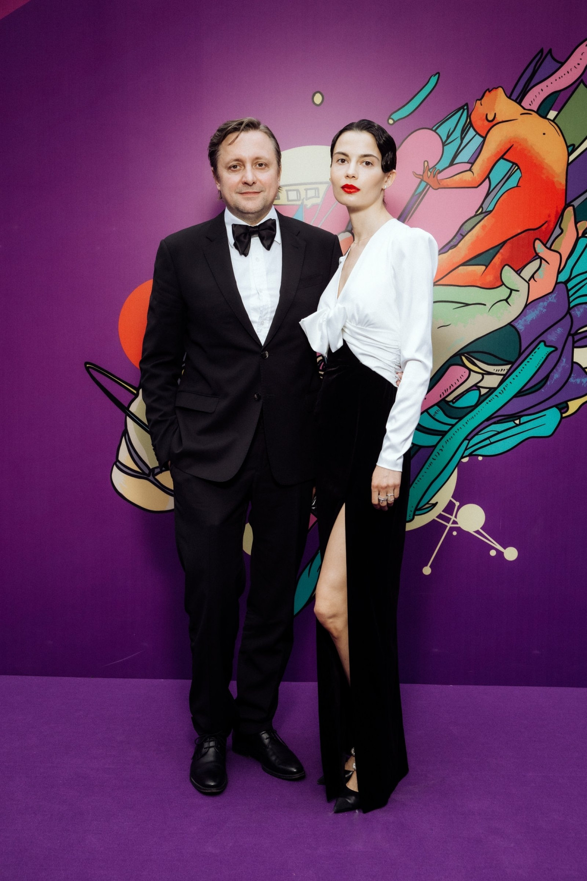 Артем Михалков был одет в классический костюм с бабочкой, Дарья выбрала для выхода в свет черно-белое платье с бантом и разрезом в зоне декольте.
