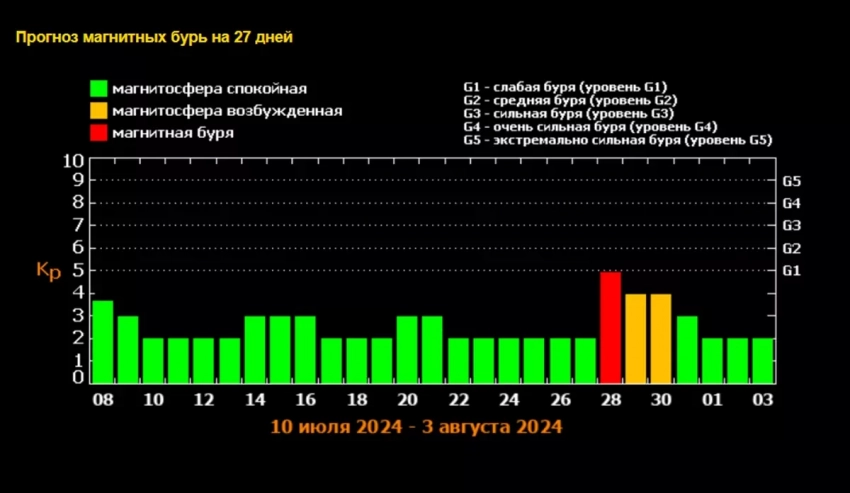 Магнитная буря 8 июля 2024 года: будет ли сильный геошторм, свежая характеристика сегодняшнего дня
