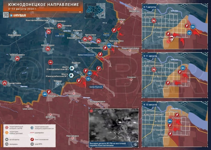 На Южнодонецком направлении ВС РФ ведут бои в Константиновке и на подступах к трассе Т-05-24, используемой ВСУ для снабжения гарнизона Угледара.
