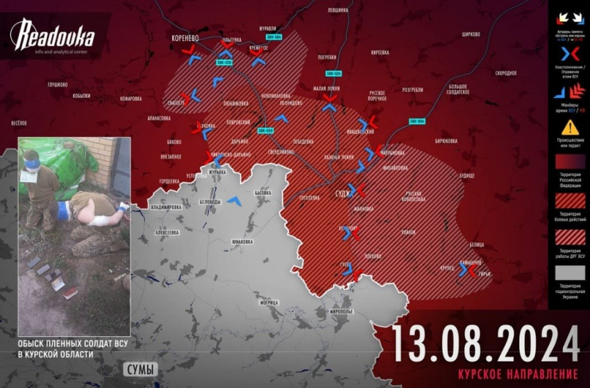 Новая карта боевых действий в зоне СВО на Украине от 14.08.2024