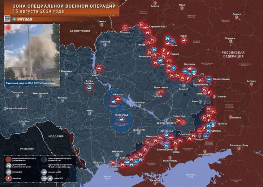 Новая карта боевых действий в зоне СВО на Украине от 16.08.2024