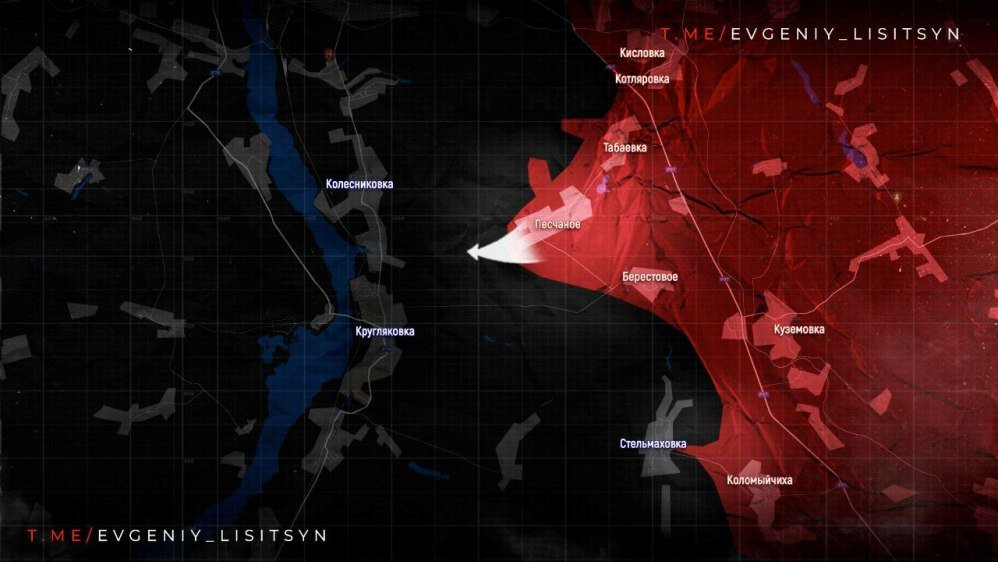 На Купянском направлении российская армия установили контроль над высотами севернее Песчаного. Это позволяет нашим бойцам держать огневой контроль над Колесниковкой, Глушковкой, Кругляковкой, которые находятся в низине. Отсюда примерно семь километров по прямой до реки Оскол. Выход к ней позволит рассечь группировку противника на несколько частей.