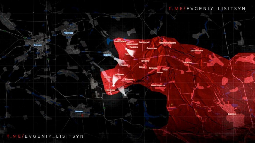 На Покровском направлении российская армия продвигается к Гродовке и уже вышла на восточные окраины этого села, закрепившись в частном секторе. Со стороны освобожденного Желанного наши бойцы двигаются к Новожеланному, где был зачищен ряд опорных пунктов противника. Отсюда расстояние до Селидово примерно шесть километров. При этом, учитывая успехи на этом направлении, для российских сил открывается множество вариантов для дальнейшего продвижения.