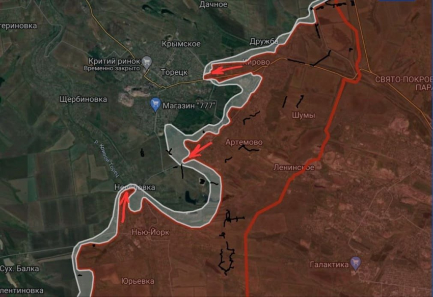 На Торецком направлении со стороны Железного, наши парни совершили мощный прорыв и закрепились на территории школы на юго-восточной окраине города. С северо-восточной стороны армии России удалось закрепиться в районе высоток, за которым останется частный сектор, оборонять который бандеровцами куда сложнее.