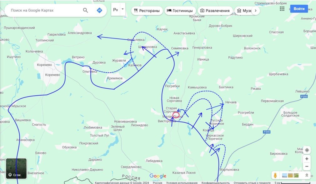 Под Суджей который день ВСУ заняты попытками обогнуть Мартыновку, чтобы, зажав её клещи, вытеснить оттуда российских военных. В частности, через село Русская Конопелька.