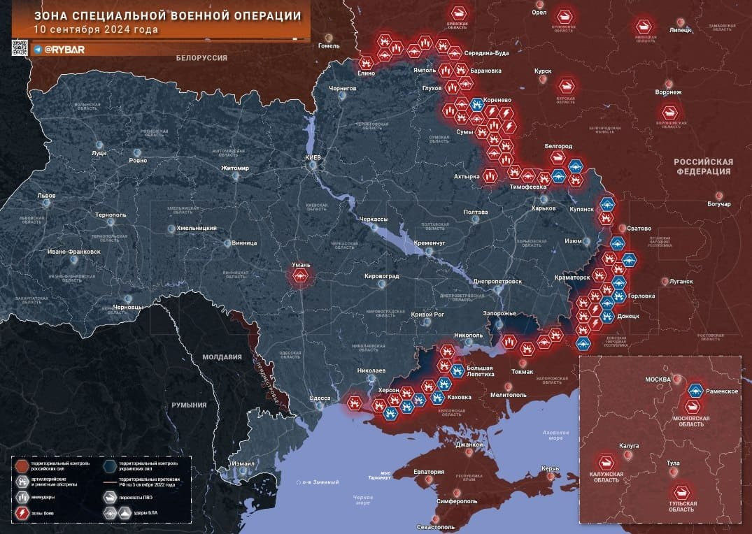 Свежая карта боевых действий на Украине по данным на 05:00 мск от 11.09.2024