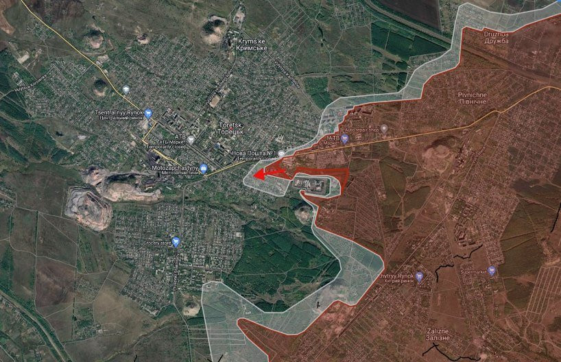 На Торецком направлении подразделения ВС РФ существенно продвинулись в центре Торецка (Дзержинска). Помимо этого, после захода Армии России на южные окраины, где сейчас развивается успех в сторону центра, образовался "карман" между Торецком и Нелеповкой. Крупный OSINT-проект Рыбарь сообщает, что нашим бойцам удалось выбить врага из этого "кармана". Помимо этого, есть продвижение в самой Нелеповке - враг находится лишь на северо-западных окраинах села.