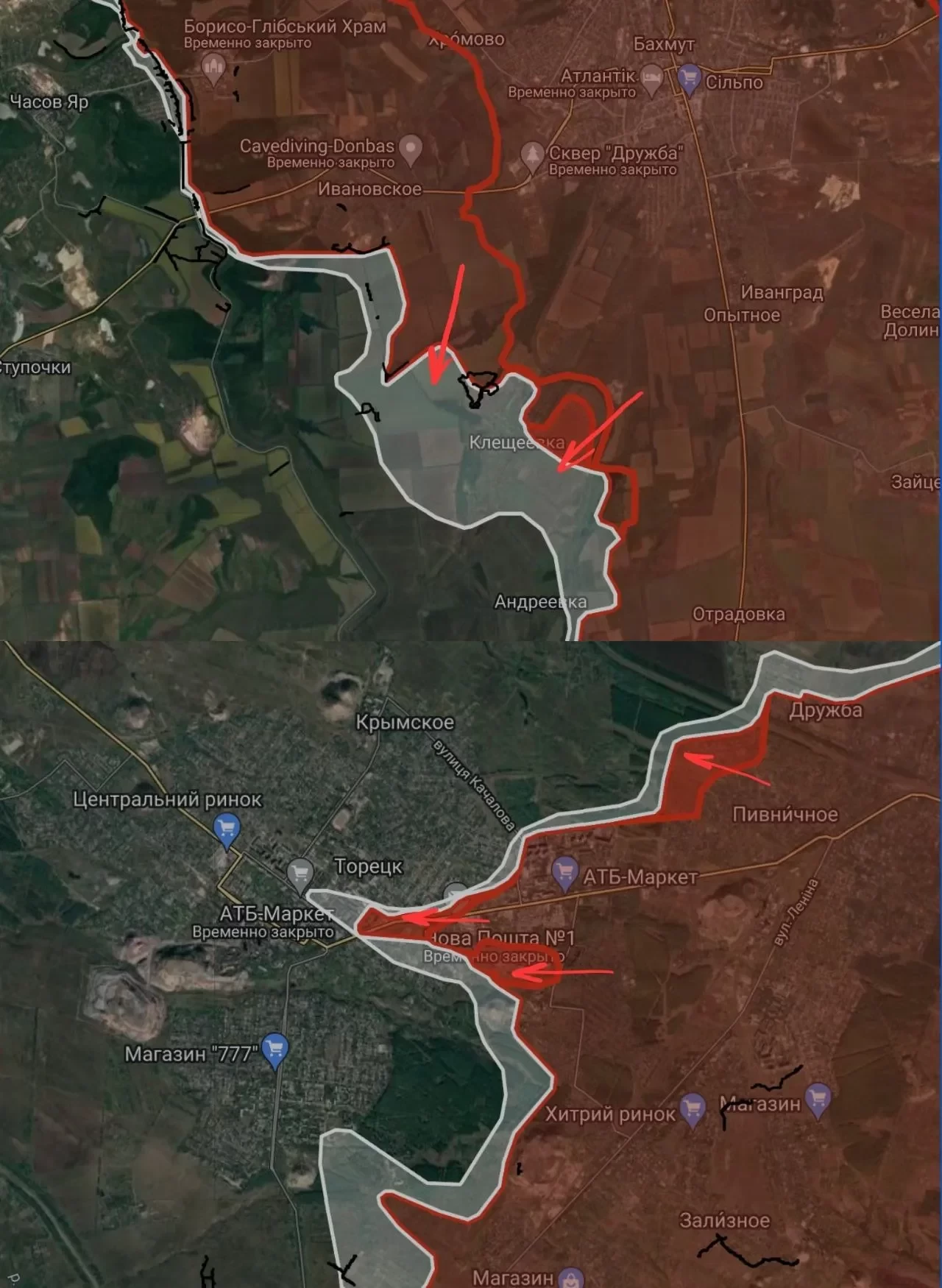 На ЧасовЯрском направлении ВС РФ имеют тактические успехи восточнее Клещеевки продвинулись до 1.05 км и давят южнее Ивановского и западнее Клещеевки.