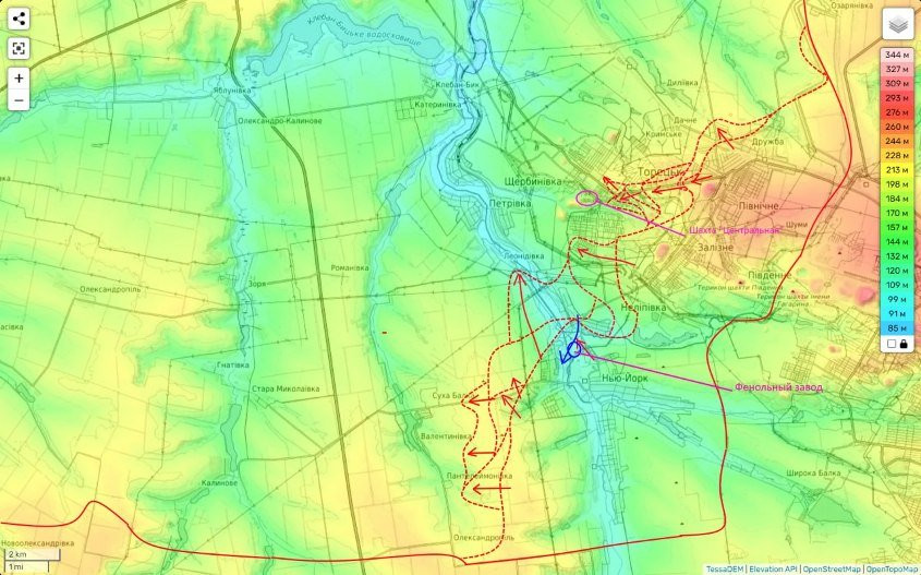 Также российские бойцы вышли к Сухой Балке и Пантелеймоновке, что говорит о том, что задуман широкий охват Торецка с запада и выход важнейшему укрепрайону ВСУ в районе шахты «Центральная» в тыл.