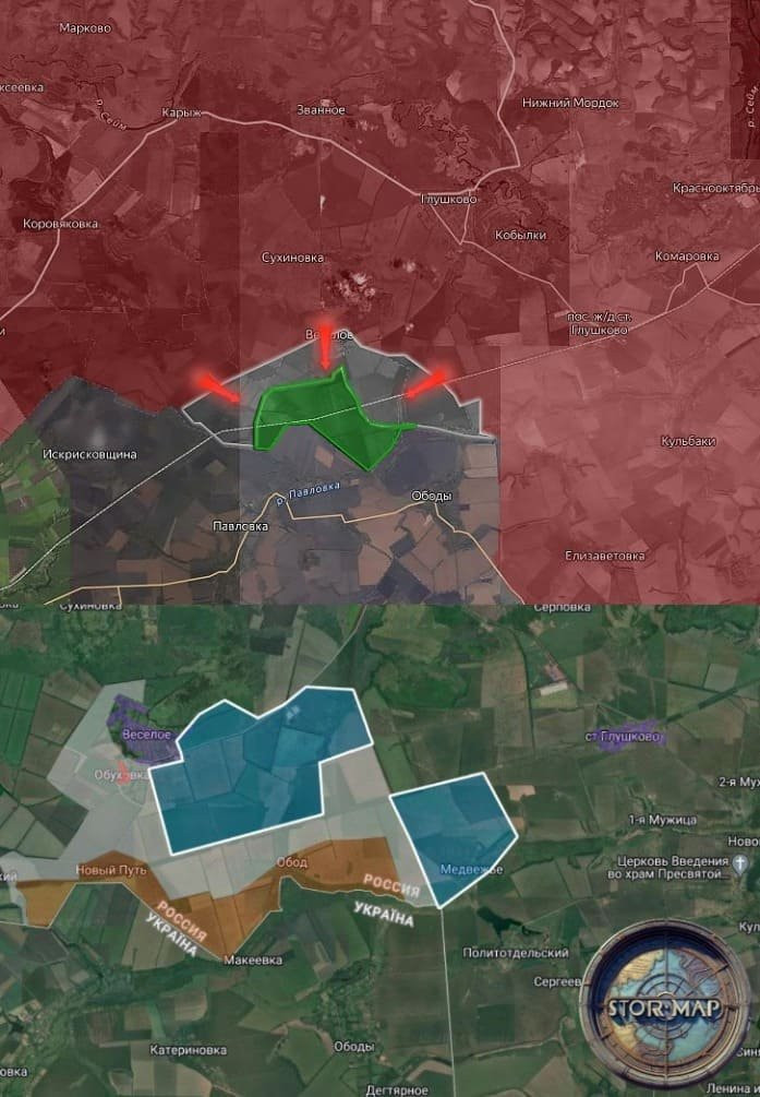На севере Суджанского района ВС РФ нанесли серию артиллерийских ударов по позициям противника в Русском Поречном. Южнее штурмовые группы российских войск наступают вдоль железной дороги к Колмакову и Агроному со стороны Русской Конопельки.