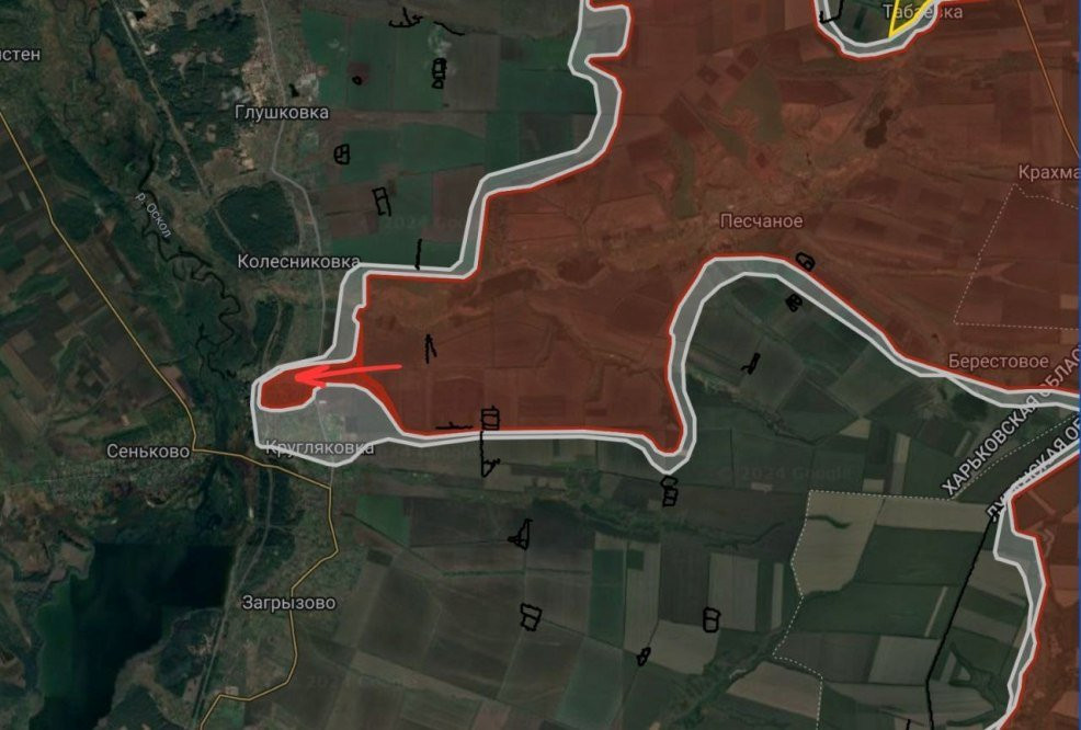 «ВС РФ достигли реки Оскол и взяли под контроль 60% села Кругляковка на купянском направлении», - говорится в публикации.