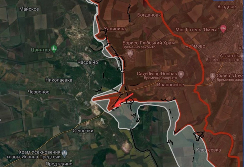 На ЧасовЯрском направлении российские войска расширили контроль территории южнее Часового Яра, продвинулись западнее вдоль дороги Бахмут-Константиновка в направлении Ступочки.