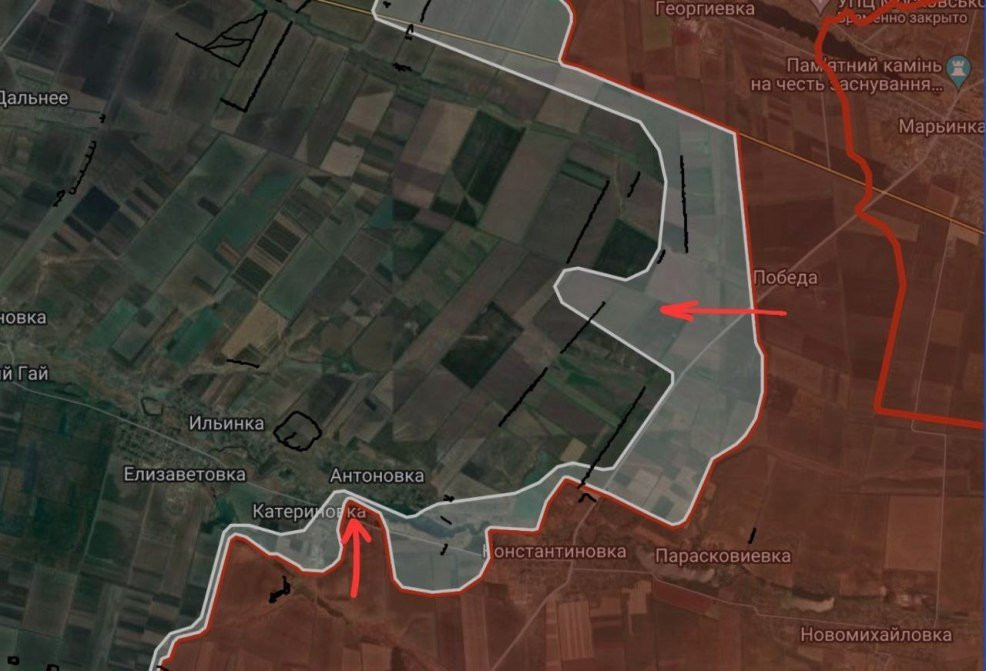 «За минувшие сутки ВС РФ закрепились в районе Шахтерского, прорвавшись почти на восемь километров, а далее пошли в атаку на село Новоукраинка, продвинувшись почти на четыре километра», - сообщают военкоры.