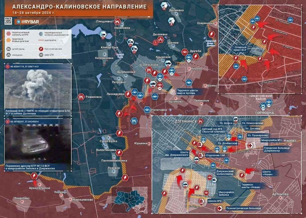 На Александро-Калиновском направлении российские войска постепенно продвигаются в городской застройке в центре Дзержинска.