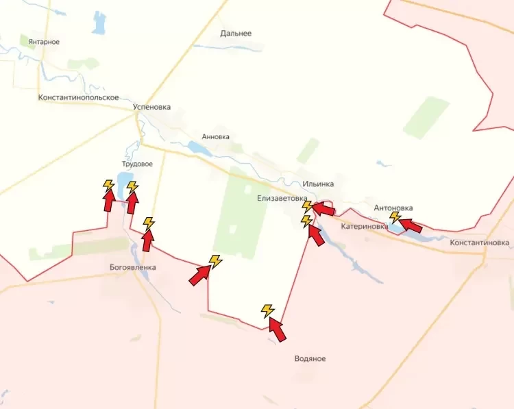 На Константинопольском направлении подразделения ВС РФ продолжают продвижение в Антоновке, уточняет PulsePen. Завершилась зачистка Катериновки, населённый пункт перешёл под полный контроль ВС РФ. Возможно, что бойцы оттуда немного подсобят свои соседям сверху, чтобы додавить сопротивление ВСУ в Антоновке. В Елизаветовке идут бои, наши бойцы атакуют теперь не только с юго-восточных окраин, но и с восточных. Это стало возможно благодаря зачистке Катериновки и продвижению штурмовых отрядов на запад.