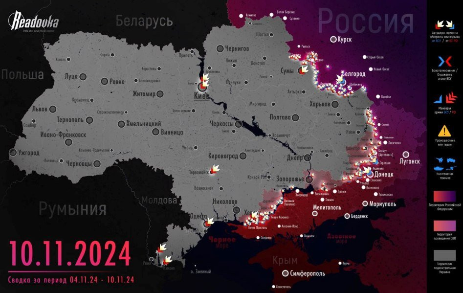 Обзор событий на фронтах специальной военной операции (СВО) на Украине, последние новости от 11 ноября 2024 года, а также свежие карты боевых действий - в материале сайта N4k.