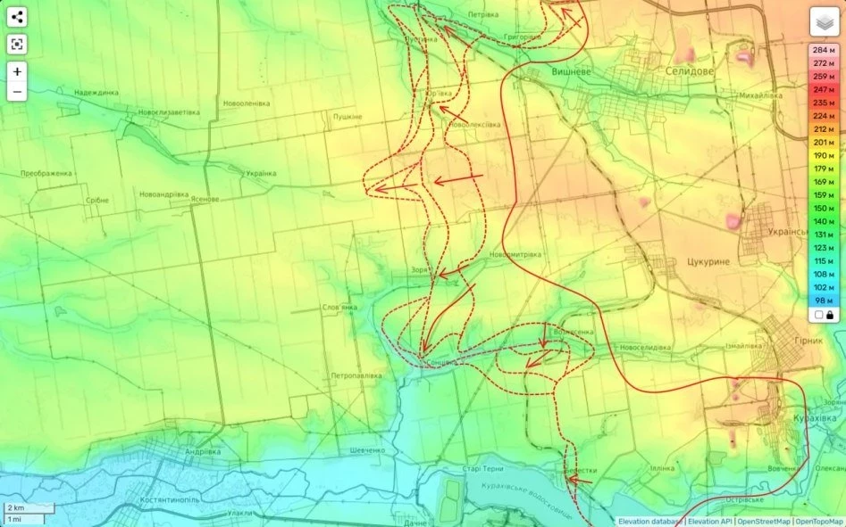 Причем, недавняя утеря контроля над Вознесеновкой и Новоселидово также обрекает оборону Солцевки и постоянное прощупывание нашими разведчиками позиций противника в районе Старых Тернов явно не случайное.