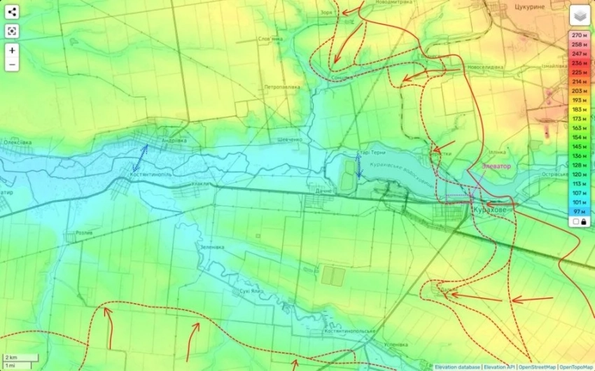 Вооруженные силы Российской Федерации также продвигаются к Курахово с юга, приближаясь к городским окраинам на расстояние в полтора километра.