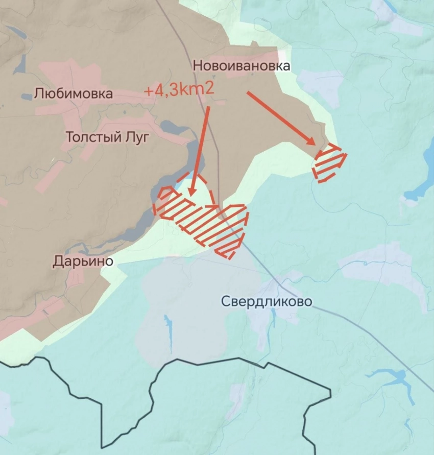 Российская Армия освободила посадки севернее села Свердликово [+4,3 км2]