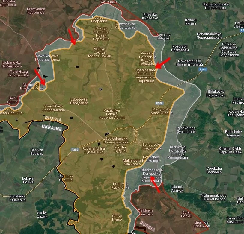 Вместе с этим отмечаются интенсивные боестолкновения в районе Русское Поречное и Черкасское Поречное. ВС РФ имеют тактические успехи в районе Черкасской Конопельки.
