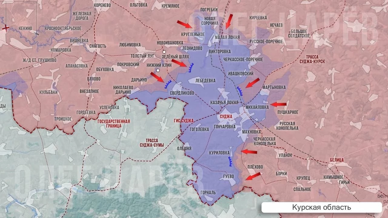 В свою очередь Telegram-канал "Два майора" информирует о том, что сложные бои в Курской области дают свои результаты. Противник терпит поражения в Новоивановке (освобождена), на подступах к Малой Локне, сообщают об успехах в Кругленьком. Тем не менее, враг оказывает ожесточенное сопротивление и бросает в контратаки пехоту и технику.