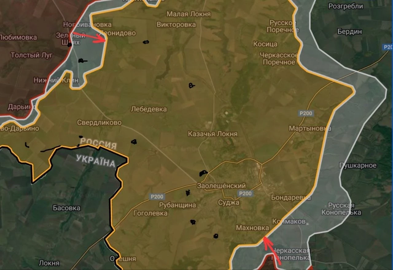 На территории Суджанского района идут зачистки лесополос восточнее Махновки. Севернее Мартыновки войска РФ продолжают наступление вдоль трассы Р-200. В районе Новоивановки отмечено продвижение к Леонидово и Александрии.