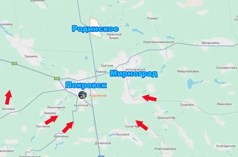 Город Родинское является крайне важным для украинской логистики на Покровском направлении населённым пунктом. От Родинского, расположенного к северу от Покровска, до самого Покровска около 6 км. При этом Родинское располагается у автомобильной дороги, которую называют северными воротами Покровска. Речь идёт об автодороге Т0515, ведущей на Доброполье и Краматорск. Именно эта дорога остаётся одной из двух (помимо Е50), по которой осуществляется снабжение Покровского гарнизона ВСУ.