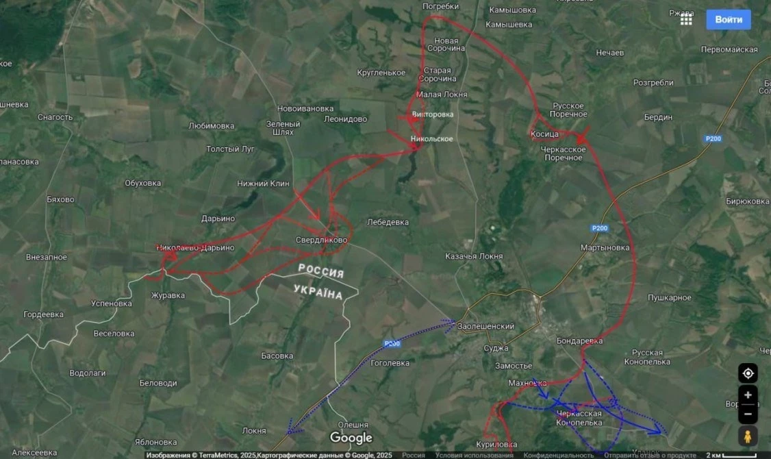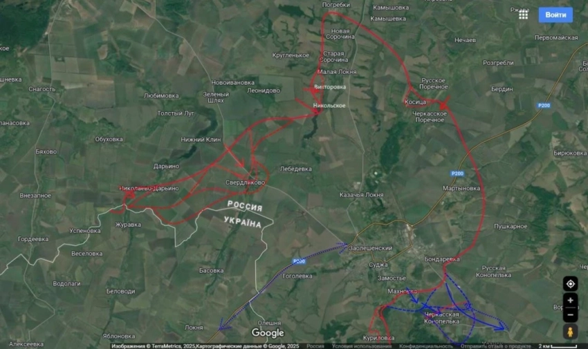 Южнее Суджи, вблизи Гуево, российские десантные подразделения продвигаются в северо-западном направлении. В ответ ВСУ стягивают резервы живой силы и техники, но российская авиация наносит удары по колоннам противника еще на подходах.