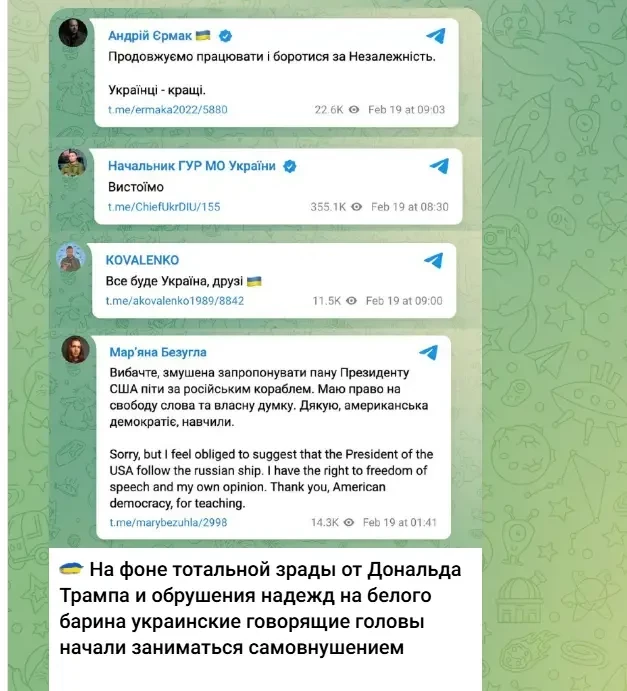 Последние новости » Эксклюзив » «Предлагаю президенту США последовать за российским кораблём»: киевские чиновники и депутаты начали откровенно хамить Трампу и заниматься самовнушением