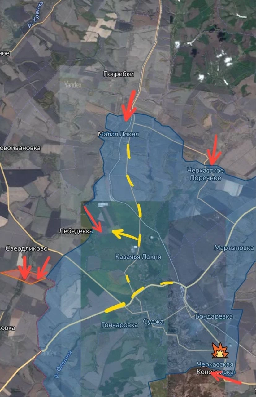 Из района Малой Локни и хутора Никольский приходят известия о продвижении вооруженных сил России примерно на полтора километра.