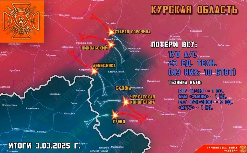 ВС РФ в Курской области ведут упорные бои западнее Суджи: свежие данные на 04.03.2025