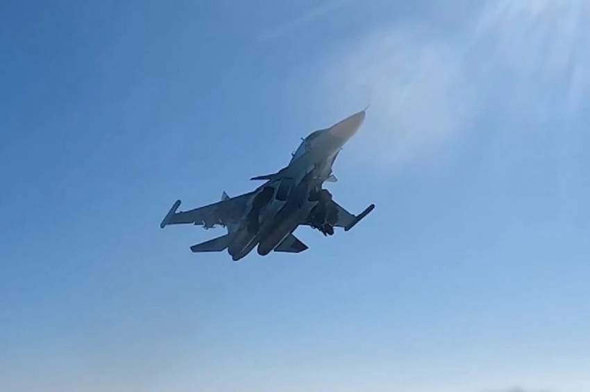 Истребитель-бомбардировщик Су-34 нанёс удар по солдатам ВСУ в Курской области