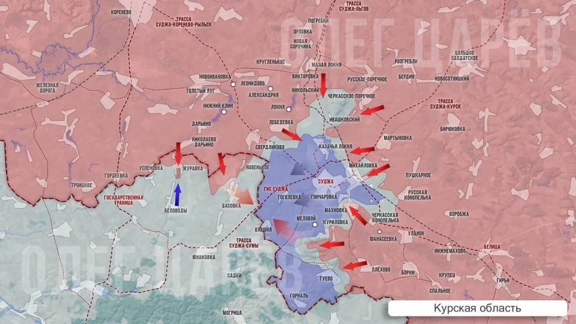 Накануне российские части сомкнули северный фронт со стороны Лебедевки и Кубаткина и начали освободительное движение на юг. На участке севернее Казачьей Локни идёт зачистка территории. Идут бои в самой Казачьей Локне, откуда части ВСУ отходят в Суджу. Северная часть Казачьей Локни уже под нашими. Также ВС РФ пытаются взять под контроль посёлки Первый и Второй Княжий южнее.