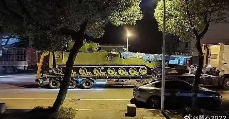В середине марта появилась ещё одна интересная фотография. Где-то на китайских улицах неизвестный фотограф снял тягач с тралом-танковозом, на котором находилась другая неизвестная машина. Объект с тактическим номером «003» перевозили открыто, хотя носовую часть прикрыли брезентом.