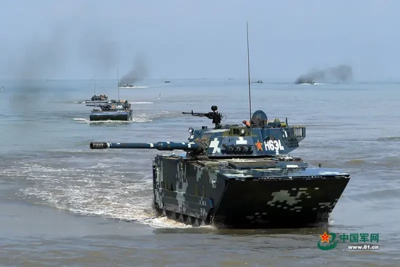 Самоходки ZTD-05 выходят на берег. Фото Минобороны КНР