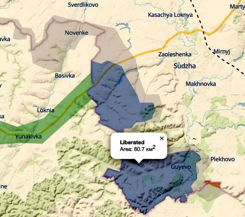 Аффилированный с ГУР МО Украины паблик Deep State утверждает, как всегда стараясь чуть приукрасить обстановку для своих пользователей, что российские войска взяли (освободили — для нас) Рубанщину к юго-западу от Суджи и якобы пока еще штурмуют Гоголевку. Также ВС РФ продвинулись к северу от Гуево.