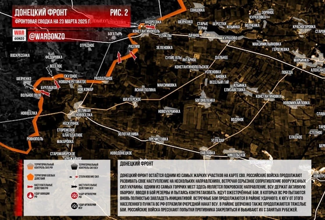Обновлённая карта боевых действий на Украине в зоне СВО по состоянию на сегодня, 24.03.2025