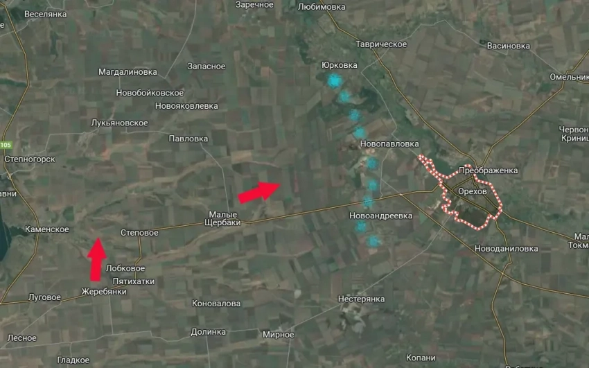Противник понимает это и потому выстраивает линию обороны западнее Орехова. Она идёт от Юрковки к Новоандреевке через село Новопавловка.