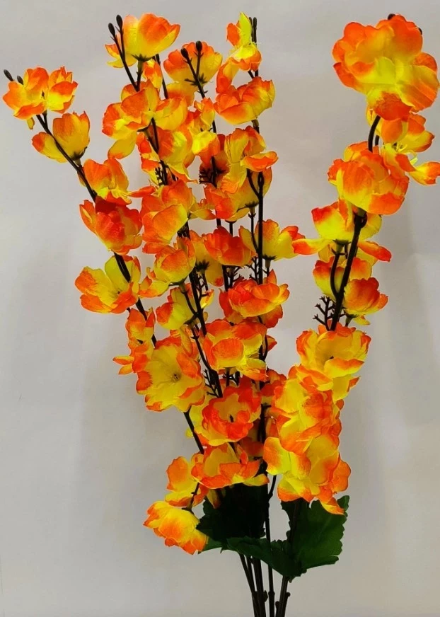Цветок искусственный. Ветка Сакура. Высота 55см. 7 стеблей. Цвет желтый/оранжевый