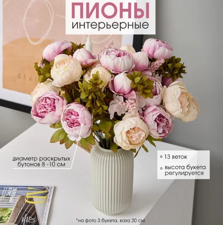 Livensi Искусственные цветы пионы для декора