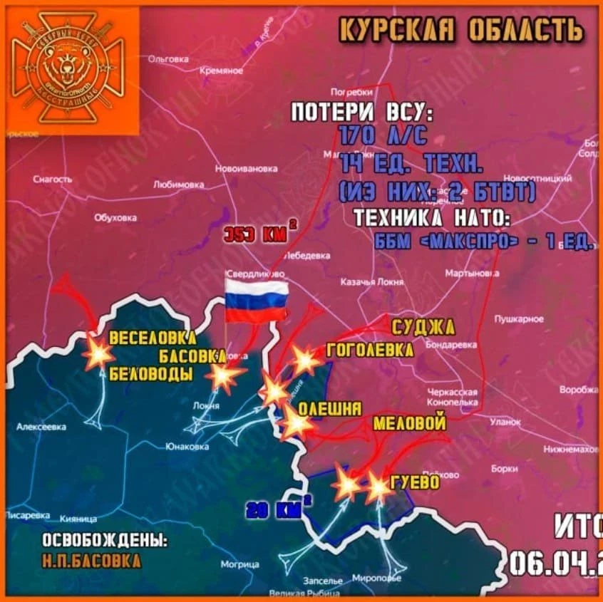 Карта боевых действий в Курской области. Данные на 7 апреля