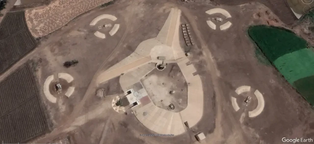 Спутниковый снимок Google Earth: позиция ЗРК С-125М на авиабазе Джамнагара. Снимок сделан в феврале 2025 года