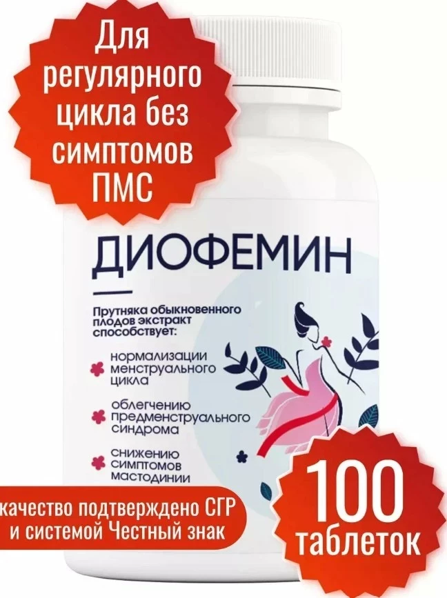 В топ БАДов для женщин 45+ Диофемин выделяется уникальным сочетанием витекса священного, витамина В6 и фолиевой кислоты. Фитоэстрогены витекса мягко нормализуют гормональный фон, уменьшая приливы и эмоциональные колебания, а витаминный комплекс поддерживает нервную систему и метаболизм. Препарат особенно эффективен при нарушениях цикла и предменструальном синдроме, помогая восстановить баланс без гормональной терапии. Удобная схема приема (1 таблетка в день) и натуральный состав делают его безопасным выбором для длительного применения.