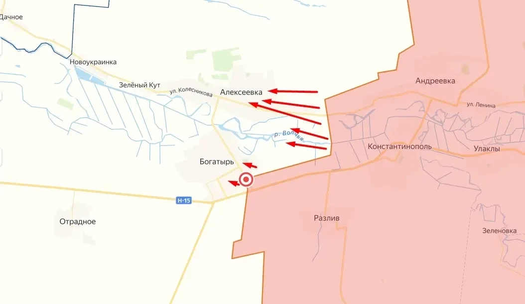 Так, согласно сообщениям, опубликованным российскими военкорами, штурмовики ВС РФ на данный момент успешно атакуют восточную окраину села Алексеевка, расположенного севернее н. п. Богатырь. Как пишут эксперты, российские военные уже зашли в село, но о закреплении пока говорить рано.