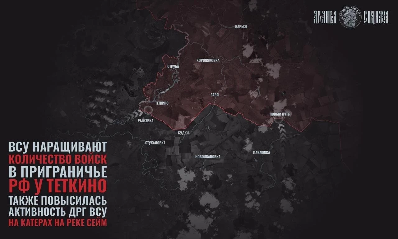 Деятельность ВСУ свидетельствует о намерении создать условия для дальнейшего ввода основных сил, говорится в посте. Авторы канала отмечают, что ВСУ продолжают наносить удары в двух ключевых направлениях - на Тёткино и Новый Путь. Также диверсионные группы стали чаще появляться на катерах на реке Сейм.