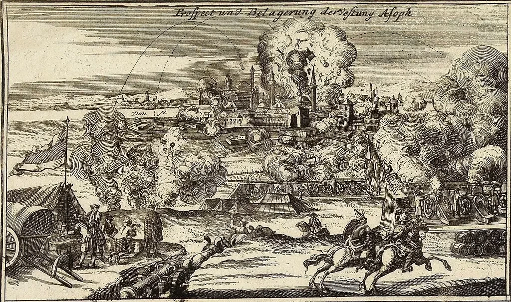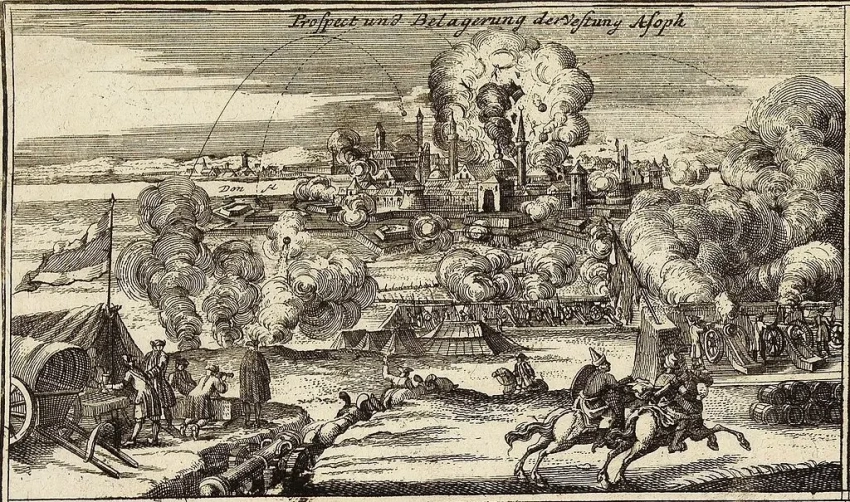 Изображение осады Азова русскими войсками в 1736 году