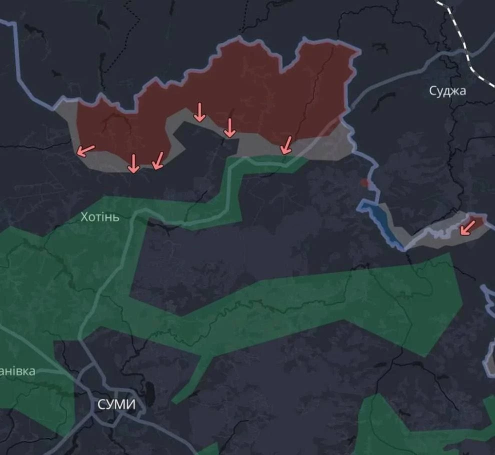 На Сумском направлении сложная ситуация фиксируется на линии Новониколаевка-Варачино-Яблоновка-Юнаковка. Российские войска закрепляются в этих населенных пунктах, несмотря на разрушения, особенно заметные в Юнаковке. Продвигаясь восточнее Локни, ВС РФ прощупывает направление к Садкам, заходя в лесной массив - что делает их вытеснение крайне затруднительным. Техника используется минимально: ставка делается на пехоту и массированное применение дронов. Именно через удары беспилотниками осуществляется дезорганизация логистики и позиций ВСУ, что, по сути, парализует оборону и коммуникации.