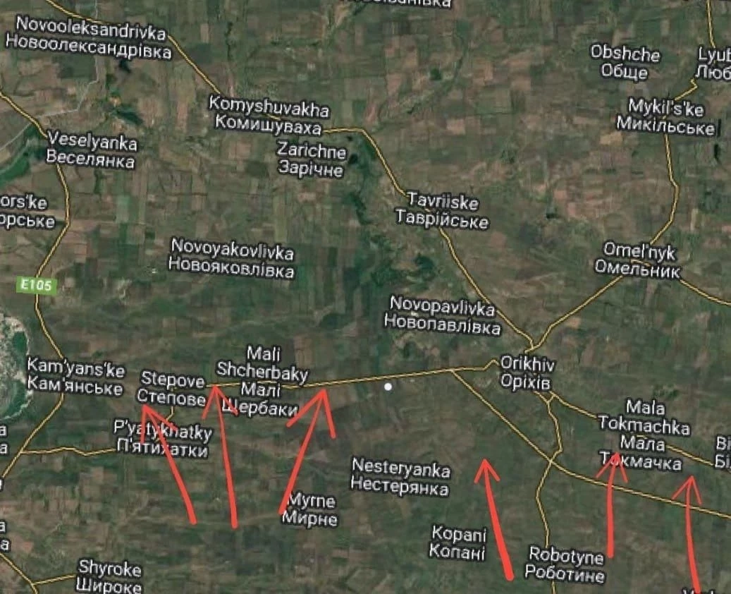 На Запорожском направлении в районе н.п. Малая Токмачка мотострелковый полк продолжает наступательные действия. За несколько месяцев мотострелки хорошо двинули фронт, подошли в упор с юго-восточной части населенника, в данный момент пробивают укрепленную, хорошо подготовленную линию обороны врага и начинают потихоньку заходить в населённый пункт. В районе н.п. Щербаки, после взятия населенного пункта и расширения зоны контроля, войска РФ обороняются и укрепляют свои позиции, так как враг на данном участке фронта точечно и большим количеством ФПВ-дронов пытается уничтожить наши передовые позиции.