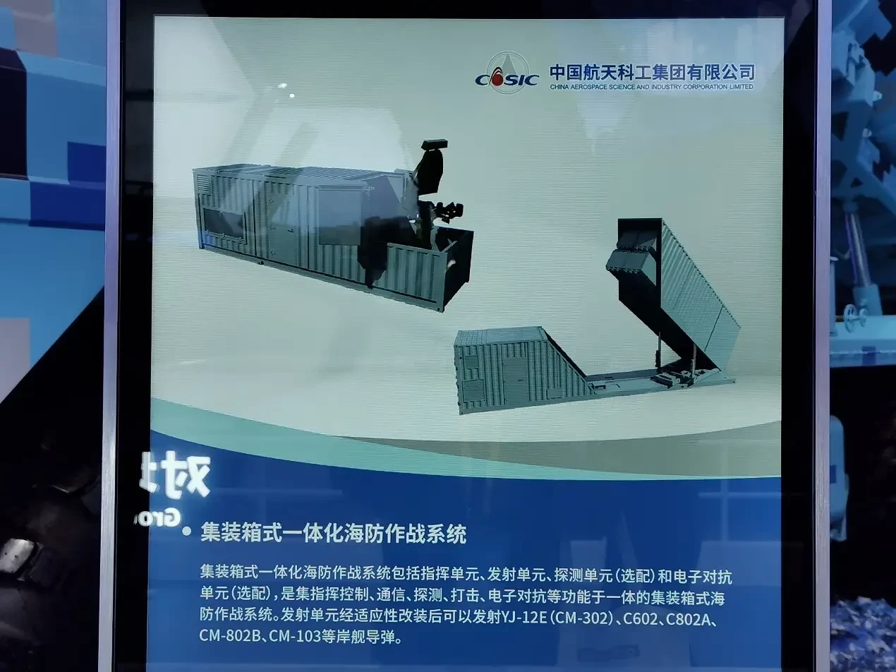 Эта информация получила подтверждение осенью 2022 г. Тогда на выставке Airshow China представили новый контейнерный комплекс, разработанный корпорацией China Aerospace Science and Industrial Corporation (CASIC). На тот момент изделие называлось «контейнерной системой морской обороны» Containerized Sea Defense Combat System (CSDCS). В павильоне выставки показали полноразмерный макет комплекса либо его опытный образец.