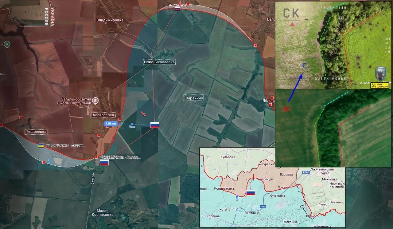 Кроме того, на Сумском направлении украинские войска предприняли 13 попыток контратаковать в районах Яблоновки, Андреевки, Новониколаевки, Юнаковки и других населенных пунктов.